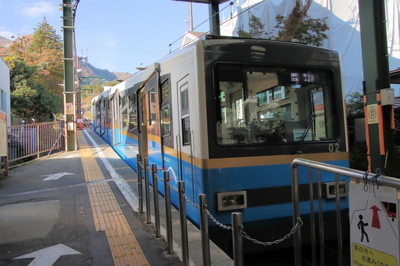 早雲山行きの箱根登山ケーブルカー。例年なら外国人観光客で大混雑なのですが