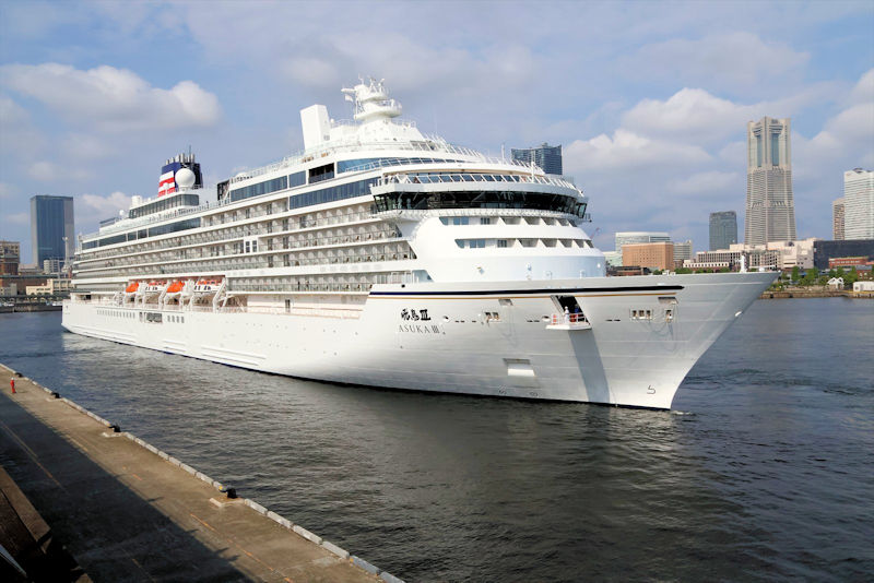 最近就航したばかりの飛鳥Vと、従来から活躍中の飛鳥Uの2隻が(おそらく)初めて横浜港大さん橋に同日・同時刻に入港という、これからもあまり見られそうにない絶好の撮影チャンスが到来しました。 しかも土曜日の午前9時と、最近目立つ早朝の入港でもないので写真・動画を撮る者としてはこんなにありがたい条件が揃ったのは大げさに言えば奇跡的です。公表されている入港時刻は着岸完了時刻なのでく、飛鳥Vがベイブリッジをくぐったのは1時間前の8時頃でした。 夏休み中でもありかなり人が出るかと思いましたが大さん橋は比較的閑散。飛鳥Vの横浜初入港のときはかなりの人出でしたので、おそらくは気が付かなかった方が多かったのではないかと思います。 |
