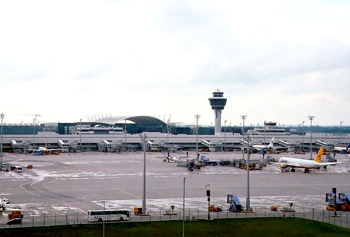 Tomokoのドイツ紀行 ミュンヘン空港/右端の黄色い垂直尾翼はエア・ベルリンのボーイング757か767のようです